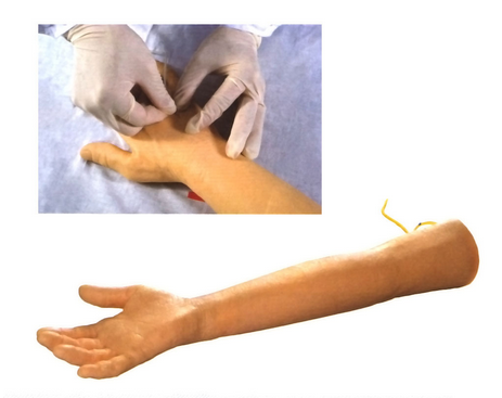 高级老年人静脉穿刺训练手臂模型是一款完全仿真的老年手臂,绝对独一无二的视觉和手感,皮肤菲薄,血管若隐若现.当学生用此进行穿刺练习时,能够培养他们对老年病人充满爱心,并在临床工作中具有充分的耐心.